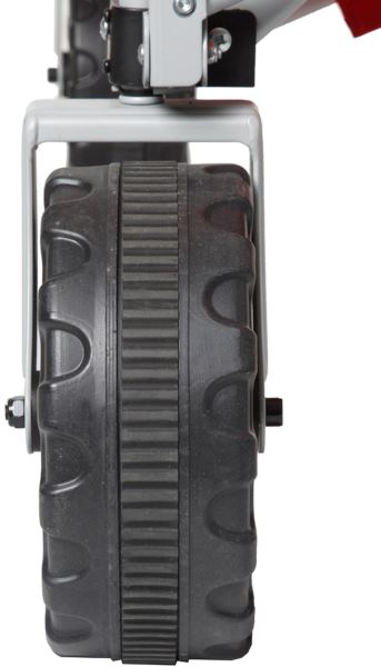 Bardzo duże plastikowe kółka ułatwiają przesuwanie się po piasku czy żwirze