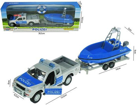 ZABAWKA "AUTO POLICJA Z ŁODZIĄ Z DZWIĘKIEM 12 cm