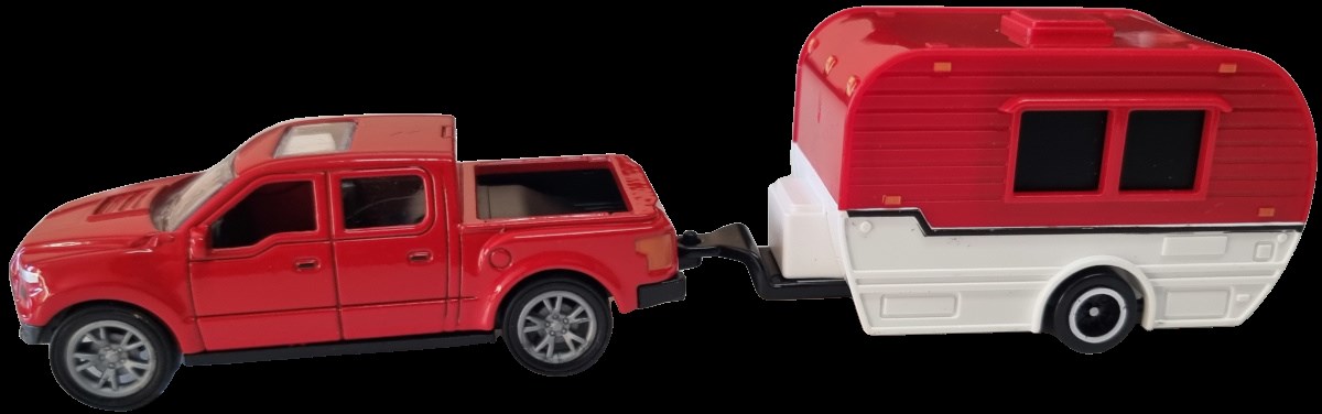 Zabawka, autko z przyczepą kempingową
