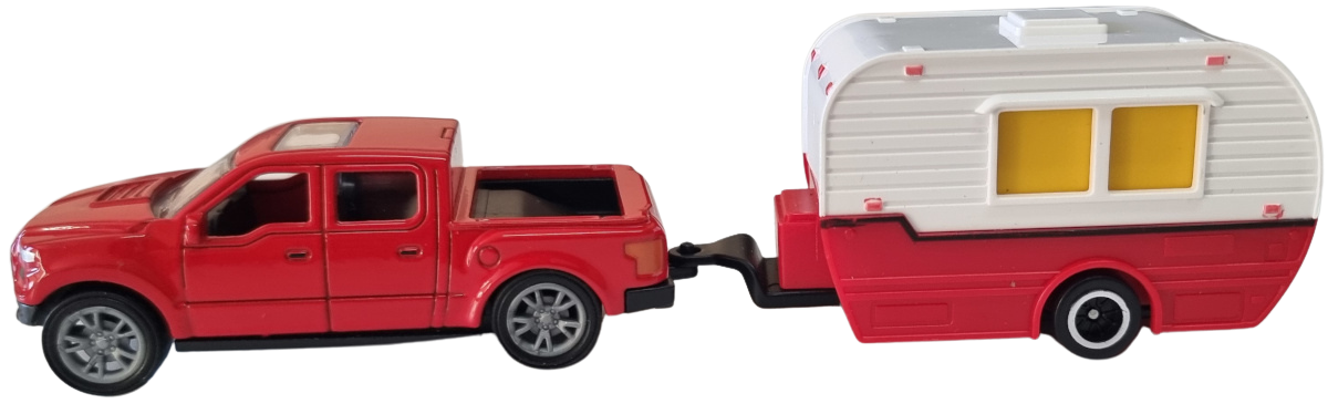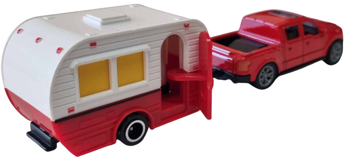 ZABAWKA "AUTO TERENOWE Z PRZYCZEPĄ 16 cm CZERWONE
