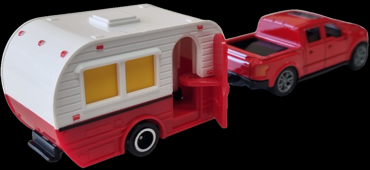 Zabawka, autko z przyczepą kempingową