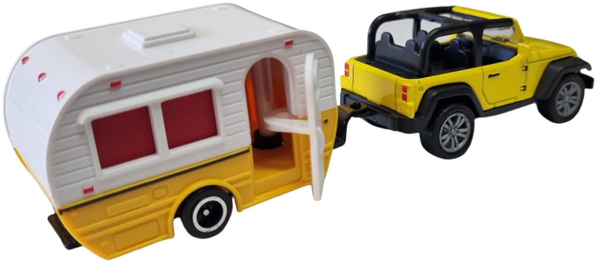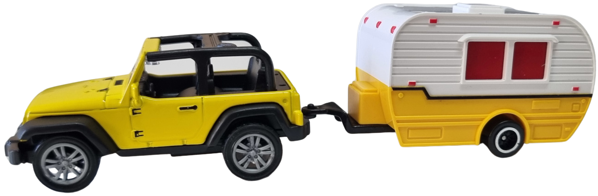 ZABAWKA "AUTO TERENOWE Z PRZYCZEPĄ 16 cm ŻÓŁTE