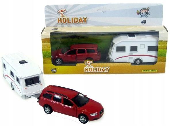 ZABAWKA "AUTO VOLVO V70 Z PRZYCZEPĄ 30 cm CZERWONE