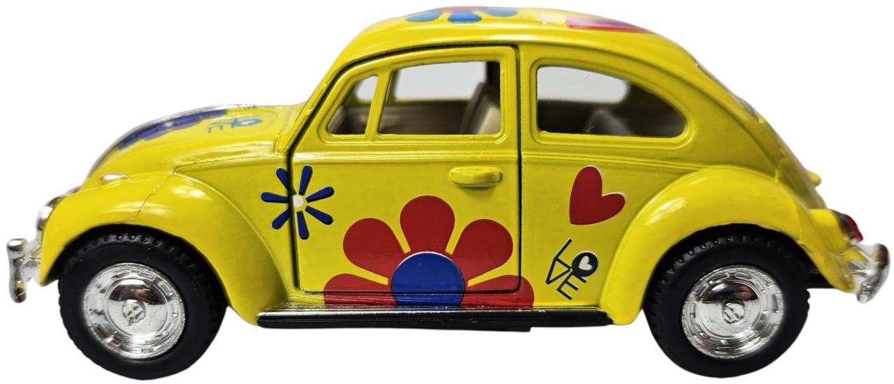ZABAWKA "AUTO VW GARBUS CLASSIC 1967 1:32 W KWIATKI ŻÓŁTY