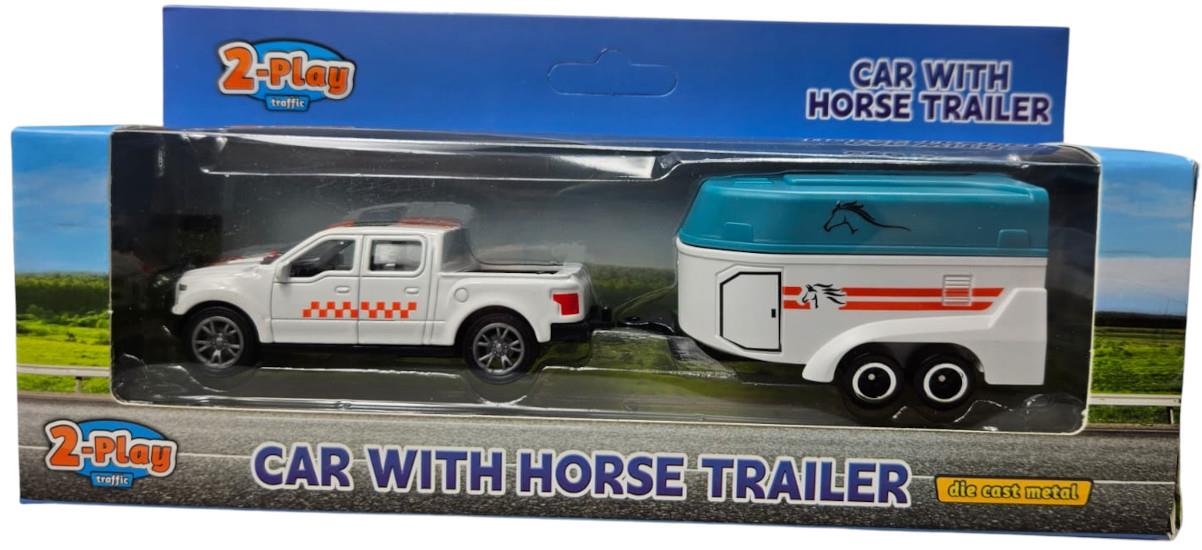 Zabawka, autko z napędem, z przyczepą do przewozu koni