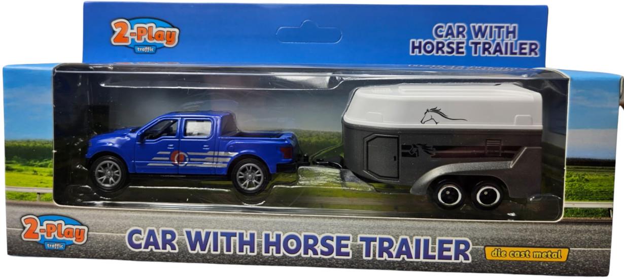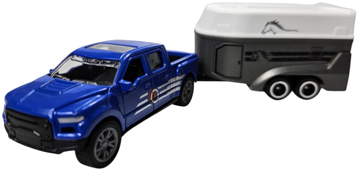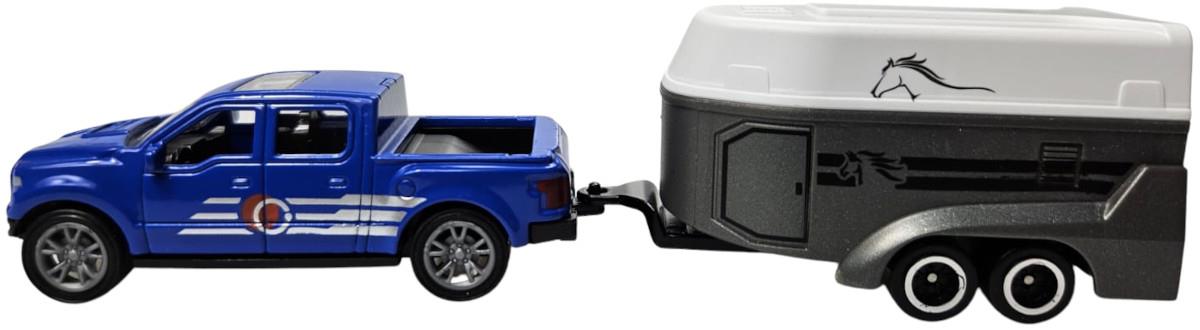 Zabawka, autko z napędem, z przyczepą do przewozu koni