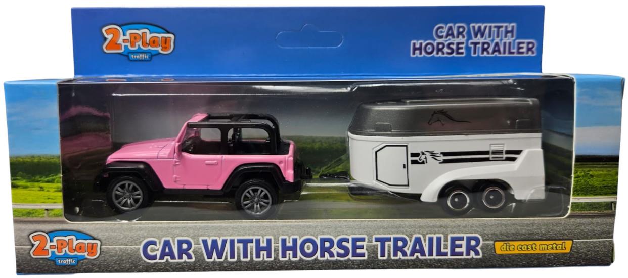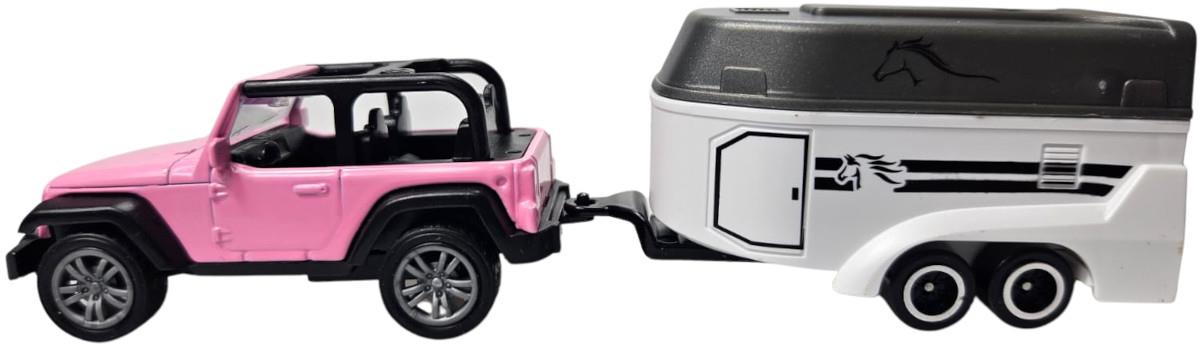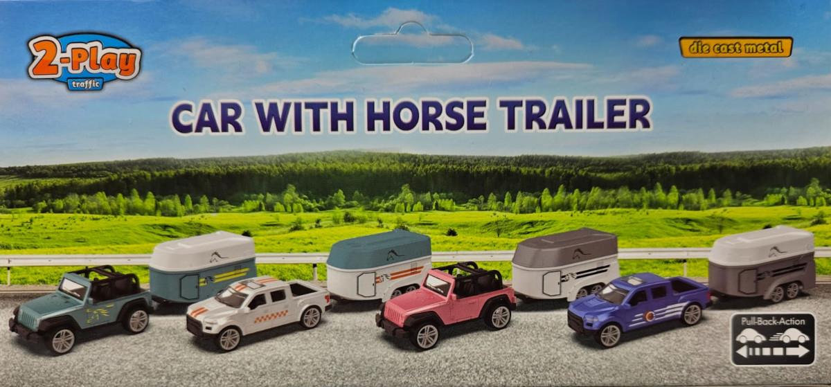 Zabawka, autko z napędem, z przyczepą do przewozu koni