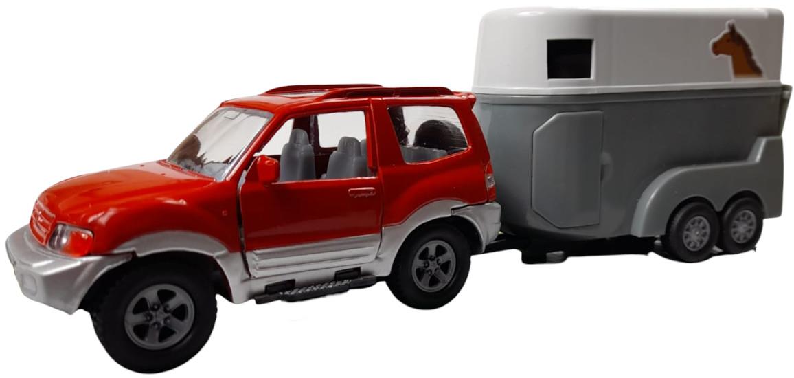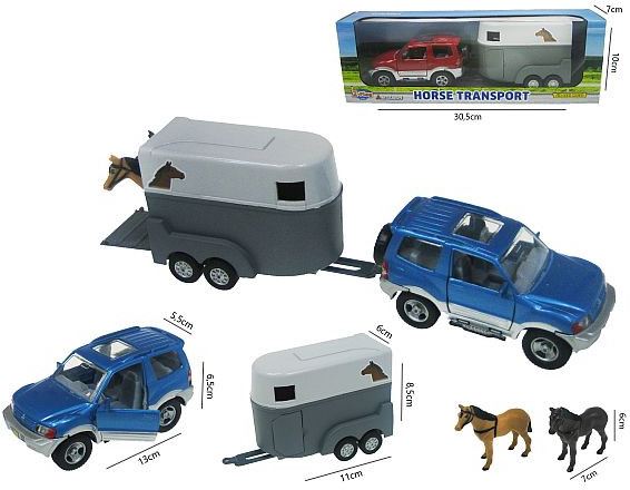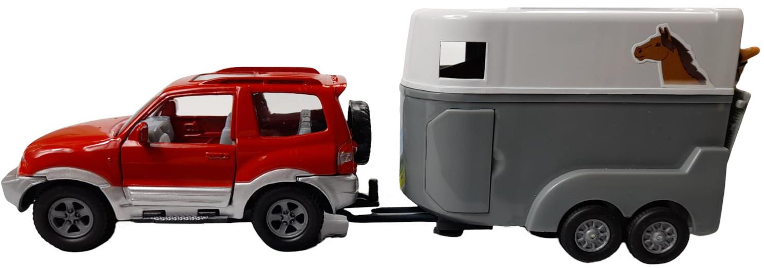 Zabawka, autko Mitsubishi z przyczepą do przewozu koni