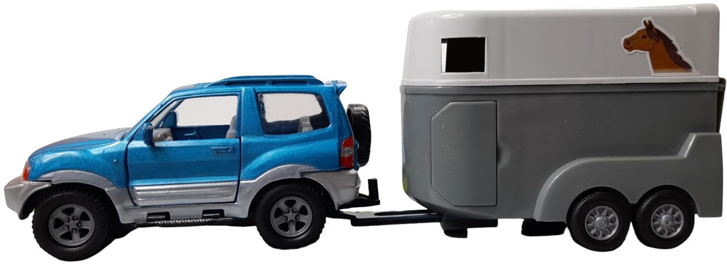 Zabawka, autko Mitsubishi z przyczepą do przewozu koni