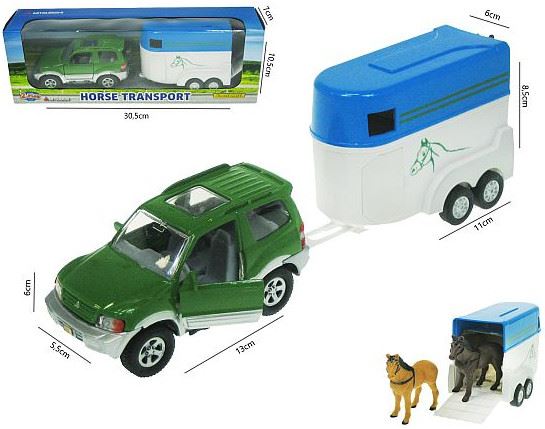 Zabawka, autko Mitsubishi z przyczepą do przewozu koni