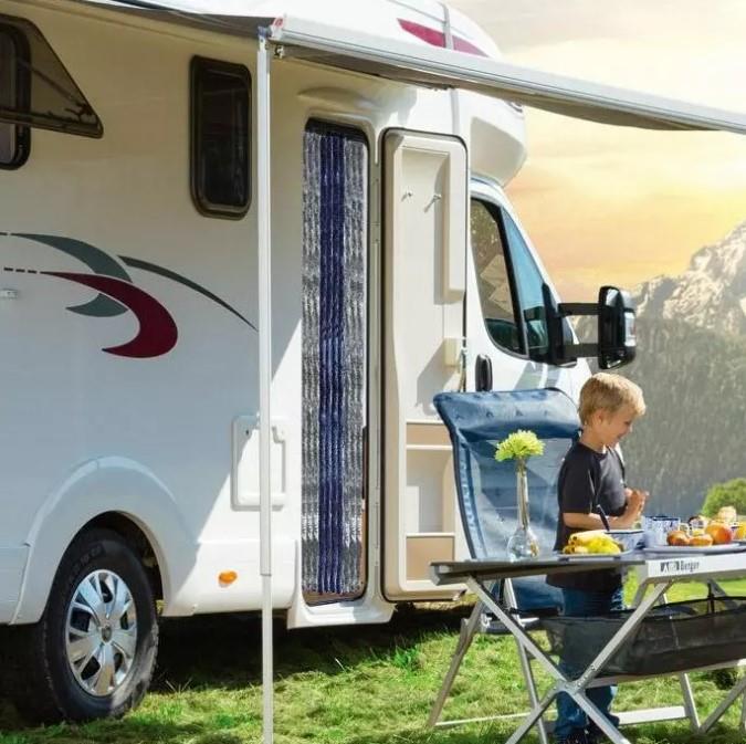 Dekoracyjna, praktyczna kurtyna drzwiowa do przyczep kempingowych, kamperów, namiotów, altanek działkowych ale także i do domu