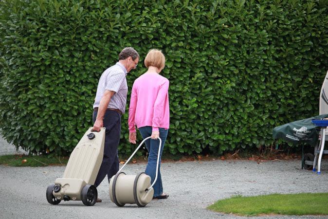 Aquaroll to przenośny pojemnik na wodę, który toczy się po ziemi ułatwiając transport wody