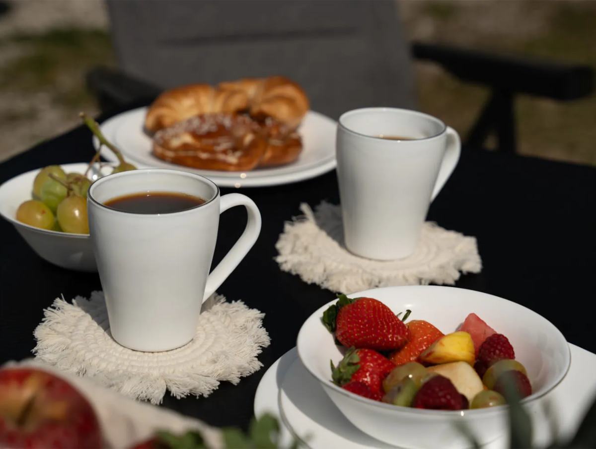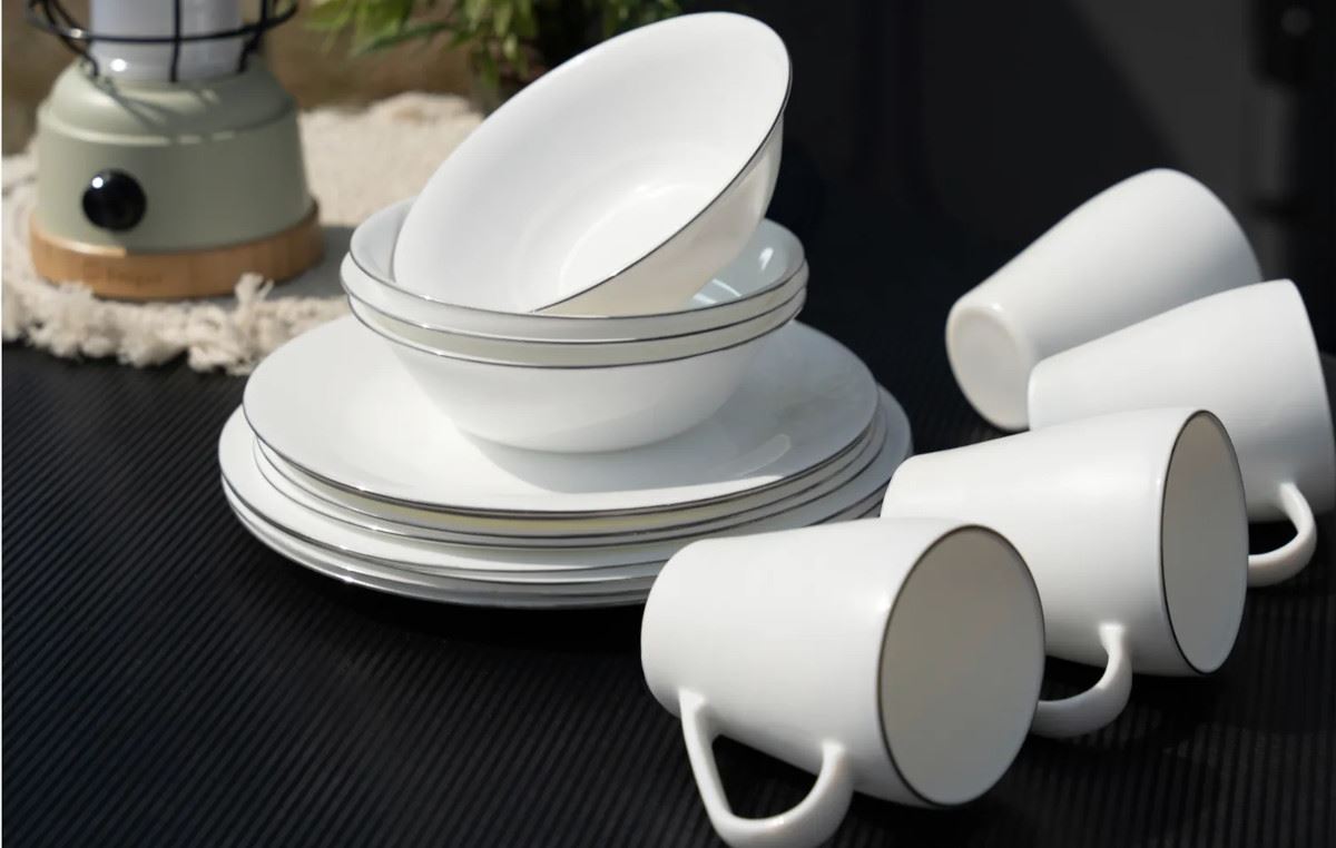 Ta kempingowa zastawa stołowa, wykonana z wytrzymałego szkła opalowego, łączy funkcjonalność z doskonałymi doznaniami kulinarnymi
