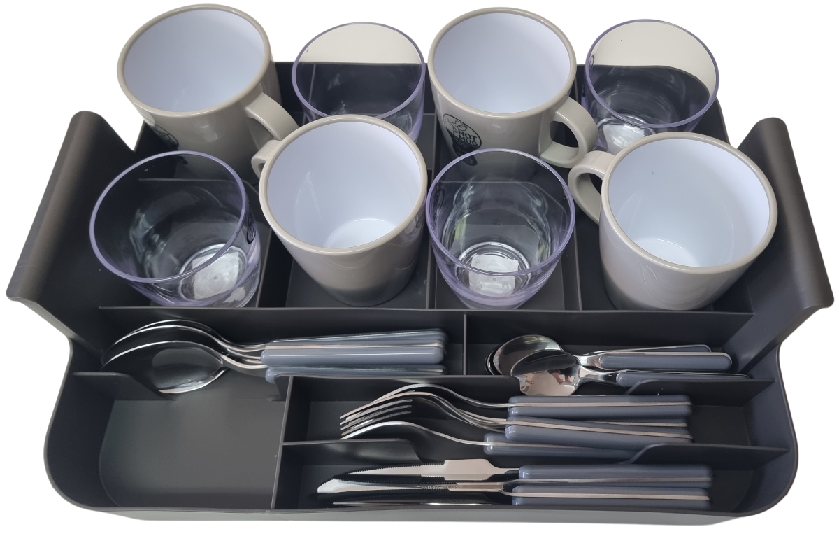 Każde naczynie od spodu podklejone jest gumą, to sprawia że naczynia są stabilne a użytkowanie w trakcie podróży jest w pełni bezpieczne i komfortowe
