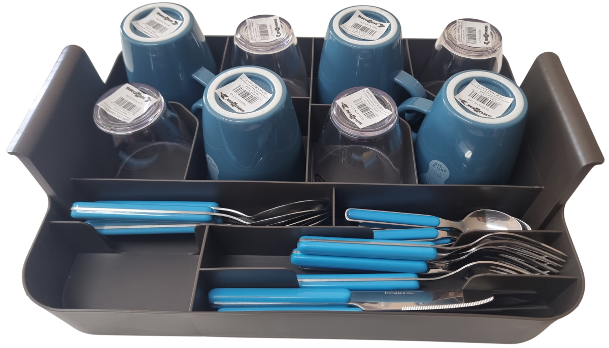 Każde naczynie od spodu podklejone jest gumą, to sprawia że naczynia są stabilne a użytkowanie w trakcie podróży jest w pełni bezpieczne i komfortowe