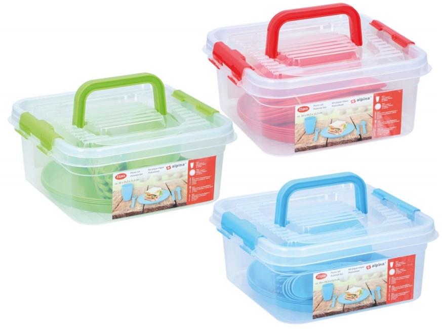 ZESTAW OBIADOWY PIKNIKOWY BOX 21 szt. CZERWONY